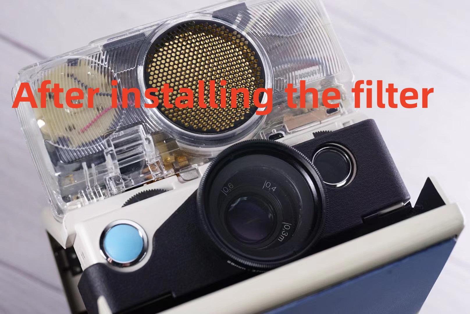 The Filter adapter is a press fit lock that is mounted directly on the front of the SX-70 camera. Check the video below to see more details. The material is strong but flexible, making it durable and easy to use.