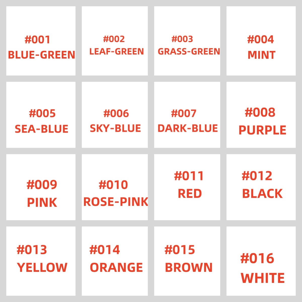 16 colors available